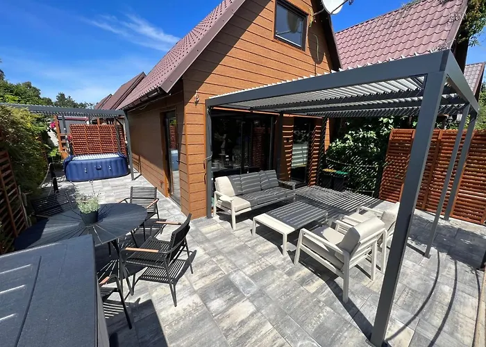 Szczecin havaalanı bu villaya 120 kilometre yakınlıktadır. Konuklar bahçe manzarasının keyfini çıkarırken terasta dinlenebilirler.